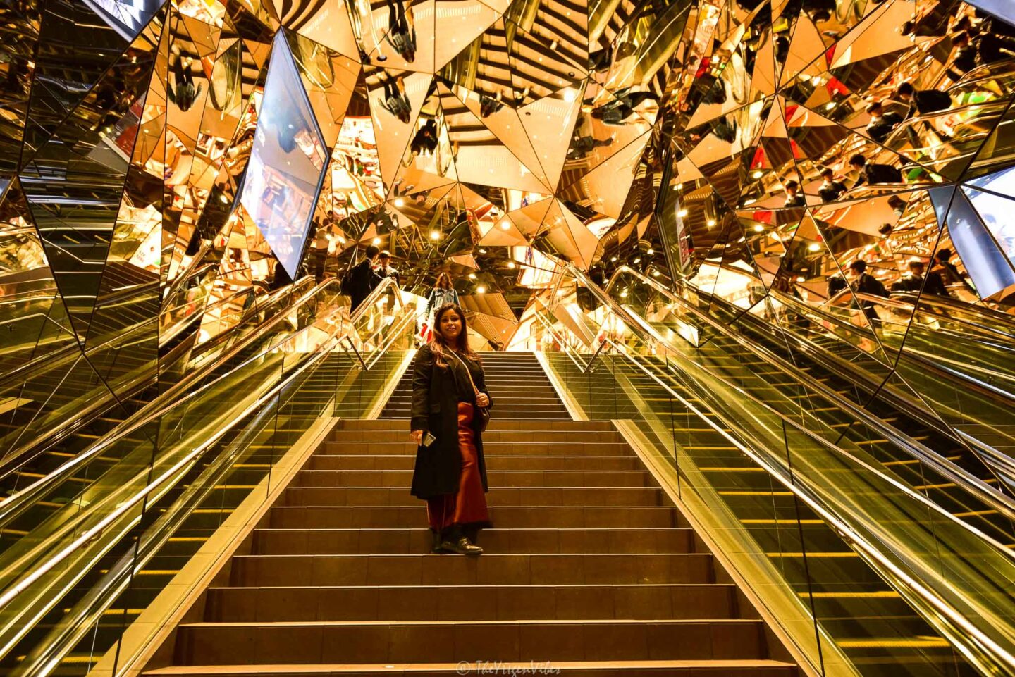 Ah what a fun it was to be in Harajaku in the evening!! This district was busy and alive with most of the young population and brimming with shoppers and tourists. We won’t deny that as much as we love our quiet escapes, we love spending time in the bustling cities too. The famous Takeshita street was flooded with people. There were quirky cafes (popular cat cafes), trendy bars, desert stalls and bubble teas. Harajaku is the centre of kawai (cute) culture and you will notice it everywhere. Just lose yourself in the streets and don’t forget to try those photobooths. The Japanese have taken it to another level. Embrace the Kawai culture if you are up for it. Visit a salon, nail or makeup bar or dress up to be the part. Harajaku is the best place to buy free spirited fashion and accessories. We had an awesome selection of teas, cakes and savoury food in The Double Tall cafe. Highly recommend it. Don’t forget to visit Tokyo Plaza for an amazing photo op. The entrance of this building has geometric shaped mirrors on the ceiling which looks incredible in photos.
